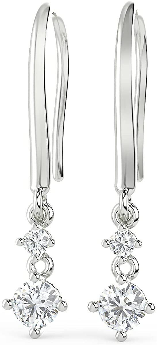 .925 Sterling Silver 3/8 Cttw Lab Grown Diamond Linear Dangle Earrings (G-H Color, SI1-SI2 Clarity)