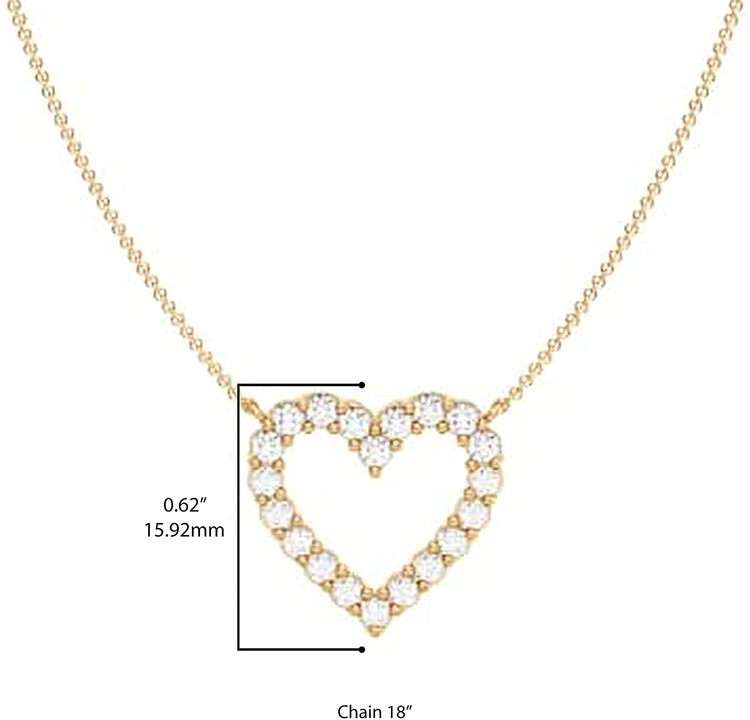 ETERNAL ELEGANCE - This stunning 10kt gold open heart pendant necklace is offered in your choice of 10 karat yellow, white or rose gold and set with 3/4 carat total weight across twenty scintillating lab created near colorless round diamonds. Each gem is securely set in prongs in this timeless symbol of love. This sweet heart shaped pendant is paired with a matching 18” cable chain with lobster claw clasp. This elegant style is the perfect gift for any occasion or milestone!BRILLIANT BENEFITS – At Carbon Atelier, our premium created gemstones are genuine diamonds cultured from a microscopic diamond through an innovative scientific process in carefully controlled laboratory conditions. These premium-quality stones are then expertly cut, polished, and set by hand by artisans who have spent decades honing their craft. Best of all, you can be sure they are 100% conflict-free. Choose lab-grown diamonds to help save the earth from the ravages of mining.BREATHTAKING QUALITY – New to our Amazon collection, this beautiful piece is crafted with 10 karat gold that has been polished to a high shine. Gold is the most popular precious metal due to its luxurious shine, durability, and tarnish-free easy care. We use only genuine 10kt gold that is nickel-free and hypoallergenic, for comfortable all-day wear that is safe for sensitive skin.THE PERFECT PRESENT – This unique and fashionable jewelry comes securely wrapped in a lovely presentation box, ready to give to any lady, young or old. It’s a thoughtful gift for your mom, sister, daughter, wife, girlfriend, best friend or even yourself. This piece is ready to give for birthdays, anniversaries, holidays like Valentine’s or Mother’s Day, or a “just because” gift simply to celebrate your loved one. Send a surprise to a special person in your life to remind them how much you care!HAPPINESS GUARANTEED! – At Carbon Atelier, we’re confident in the prime quality of our products. We inspect each item before packaging it carefully for shipment (and upon receiving all returns). We know you’ll love all our beautiful jewelry and exquisite stones! If for any reason you are not totally happy with your purchase, our products are always backed by our Risk-Free 100% Money Back Promise for 30 days after purchase. A 5% restocking fee applies to returns (waived for exchanges).    Product Description                        if(P) {   P.when("a-expander").execute(function (expander) {    expander.initializeExpanders();   });  }                                        Read more                                                           Carbon Atelier’s large selection of jewelry is a must-see!           Fashion-conscious styles to collect compliments           This ensures you will always receive stones with clarity that is as good or better than the stated grade.    If classic elegance is what she likes, it's here in this striking pendant necklace which features a beautiful 3/4 Carat IGI lab-created white diamond in round brilliant shape. Bezel-set in gleaming 10 Karat white gold, yellow gold or rose gold, this solitaire stone is suspended from a cable chain adjustable from 16" - 18". A Lobster-claw style clasp provides security for all-day wear.                                                             Exceptional Quality & Craftsmanship             G-H Color     SI1-SI2 Clarity     Solid 10 Karat Gold Settings     100% Hypoallergenic               Read more                                                    State-of-the-Art Stones           All of Carbon Atelier's 100% real lab-grown diamonds are created through the miracle of modern technology.    In our high-tech facility, an innovative process called chemical vapor deposition, or CVD, recreates conditions found in nature, using a hydrocarbon gas mixture to activate the carbon atoms in a tiny diamond seed. This causes the diamond crystal to grow, transforming the carbon vapor into real diamonds that are chemically, optically and physically identical to mined stones. Our premier-quality lab-created diamonds are so indistinguishable from natural diamond stones, even trained gemologists need special machinery to tell the difference.    Once the growing process is complete, each diamond is precision-cut and hand-polished to perfection, before being set by artisans with decades of experience in their craft.         Read more                                                   At Carbon Atelier, we exclusively use laboratory made diamonds that we grow ourselves. This gives us the latitude to create jewelry that strike the perfect balance of beauty and value, delivering exceptional quality with the best cut, color and clarity... carat for carat.                                                                                                                                                                                                                                                                                                                                     CARAT - Because Size Matters           Carbon Atelier offers only genuine laboratory created diamonds set in fashionable jewelry silhouettes that every woman will love to wear or to receive.    Our specialty is larger-sized carat weights that are hard to find elsewhere. We make it easy to give in to your urge to splurge!                                           CUT - For Sparkle & Reflection           All of Carbon Atelier's jewelry features stones with very good to excellent cut grades, lending exceptionally brilliant sparkle.    After being forged through the CVD process described above, our rough stones are expertly cut and polished by master artisans, for finished gems that dazzle, reflecting light with your every move.                                           COLOR - The Hue for You           Our designer jewelry features lab created diamonds in both colorless and near-colorless ranges.    When near-colorless and even faint yellow grade st