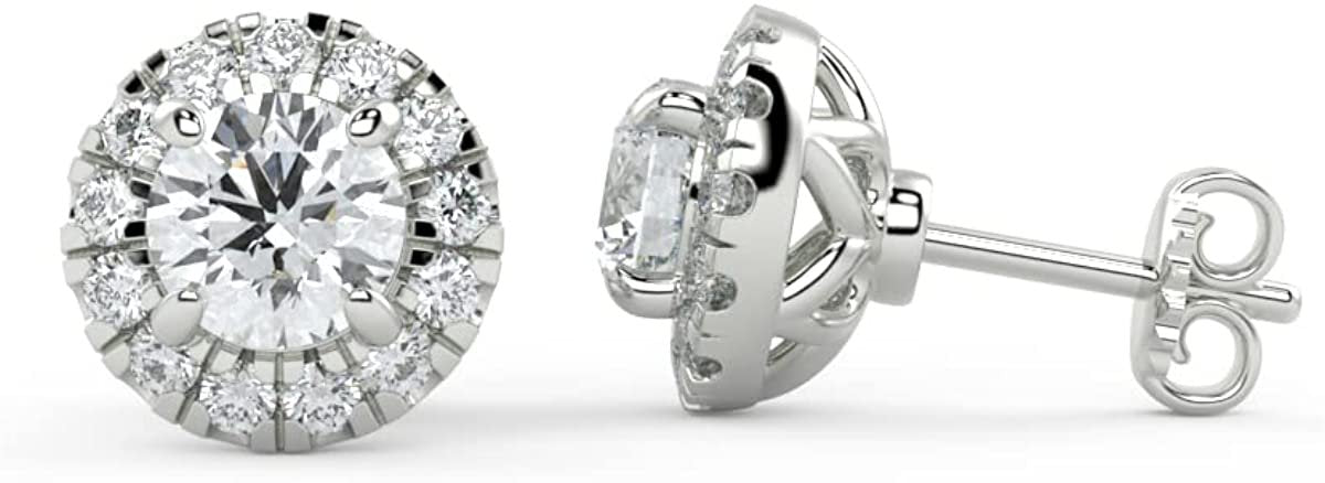 - SPARKLING SOPHISTICATION – A scintillating ring of stones encircles a central lab-grown diamond in each of these exquisite halo-style earrings. Inspired by vintage glamour, with an air of simplicity, these earrings will become a favorite you'll reach for over the decades to come. Notched friction posts and butterfly backs keep them comfortably secure on your pierced ears all day long.