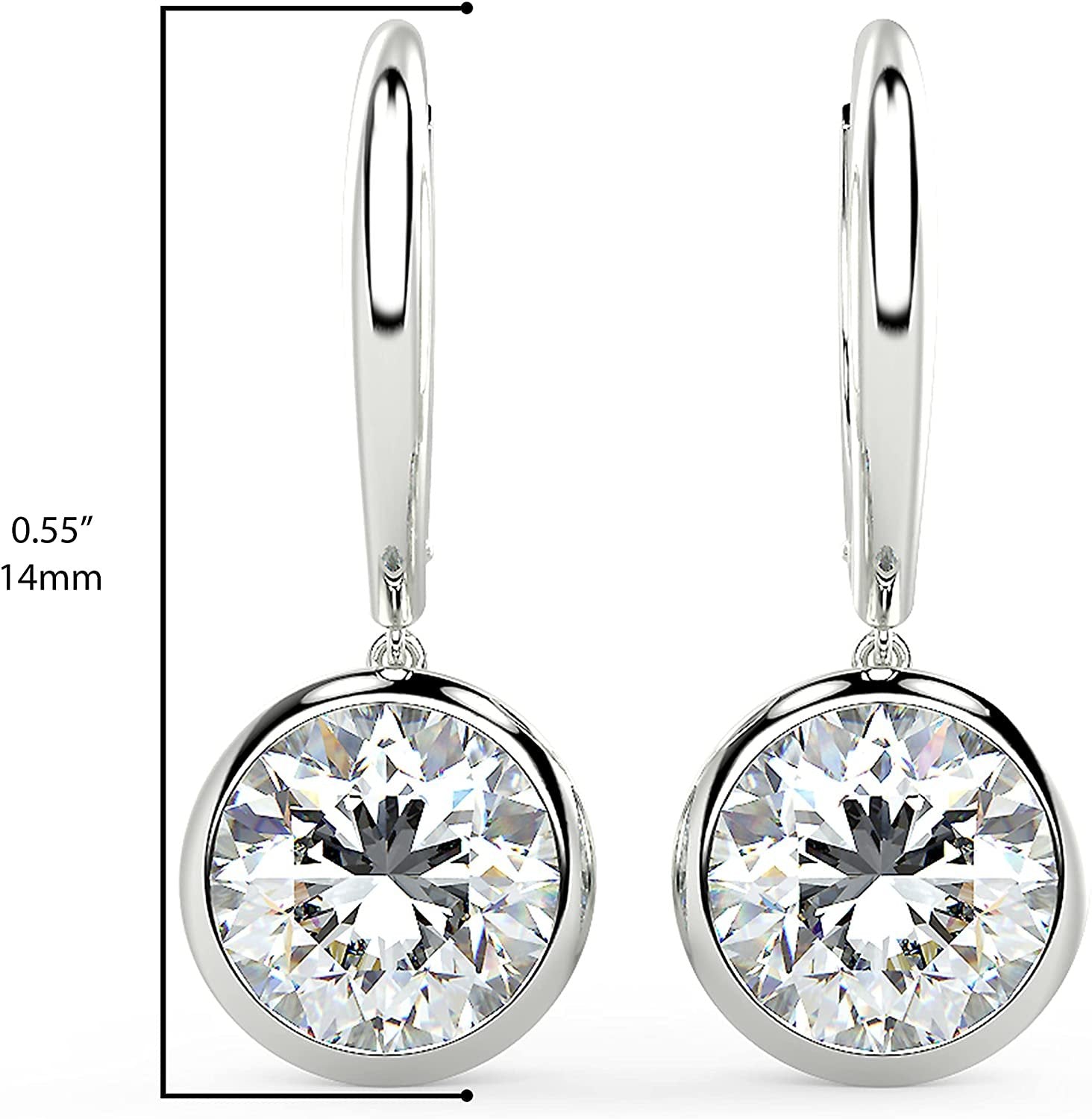 - MODERN SIMPLICITY – A single, dazzling lab-grown diamond is nestled in a sleek and gleaming bezel setting in each of these understated drop earrings. The gems are attached to the earwires with a hinge, leaving the stones free to sway and sparkle with your every move. Leverback findings ensure they stay comfortably secure on your ears all day long.