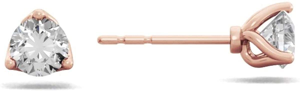 14K Gold 1/2 or 2/3 Cttw Round Brilliant-Cut Lab Created Diamond 14K Gold Martini-Set 3-Prong Stud Earrings (G-H Color, VS1-VS2 Clarity) - Choice of Metal Colors, Gem Weights