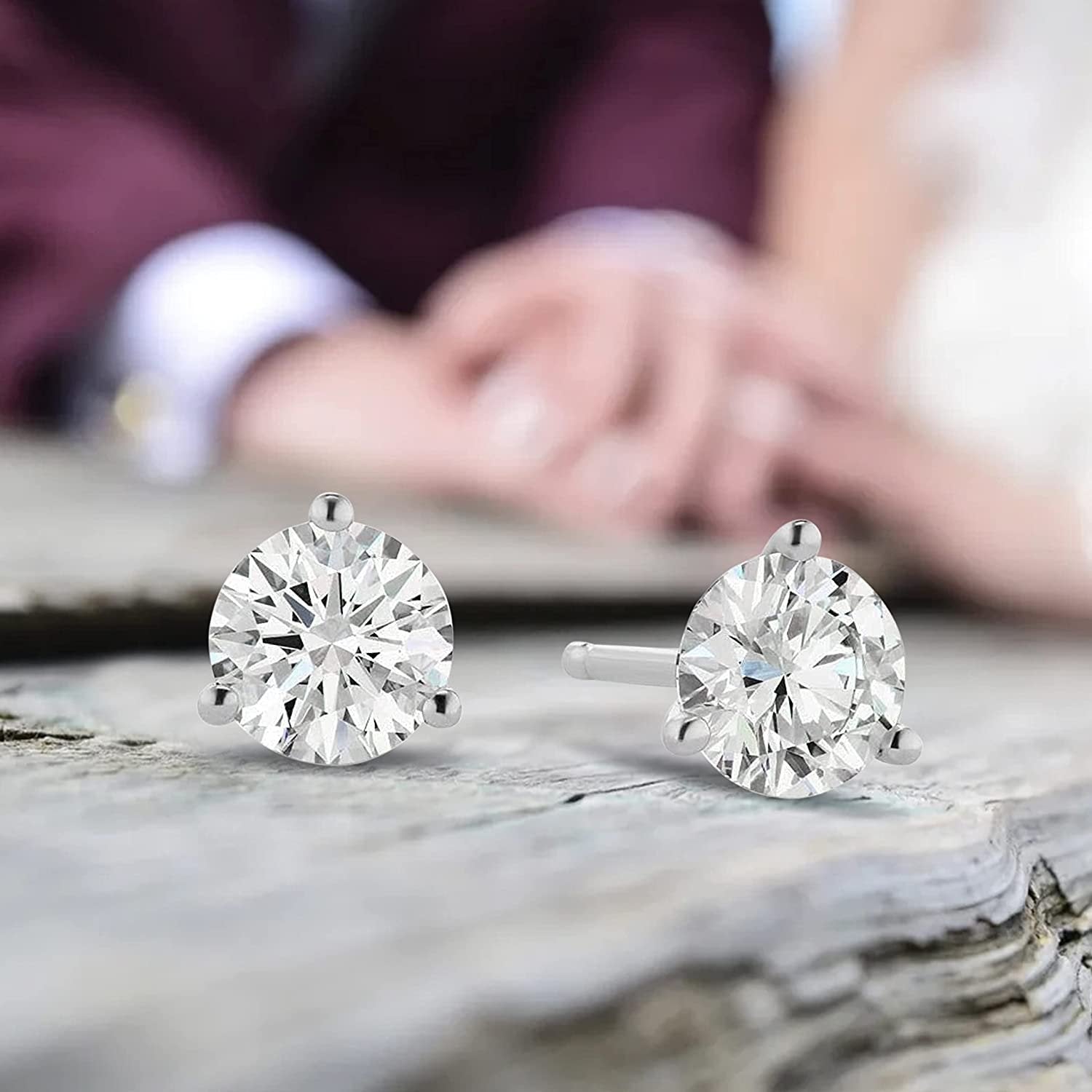 - COLLECT COMPLIMENTS – These are the studs you've been looking for! The 3 pronged martini setting is elegant in its simplicity – a contemporary twist on an unquestionably classic design. Three slender prongs keep these solitaire diamonds securely nestled in basket settings that let in extra light, for superior sparkle. Notched friction posts and butterfly backs keep them comfortably secure on your pierced ears all day long.