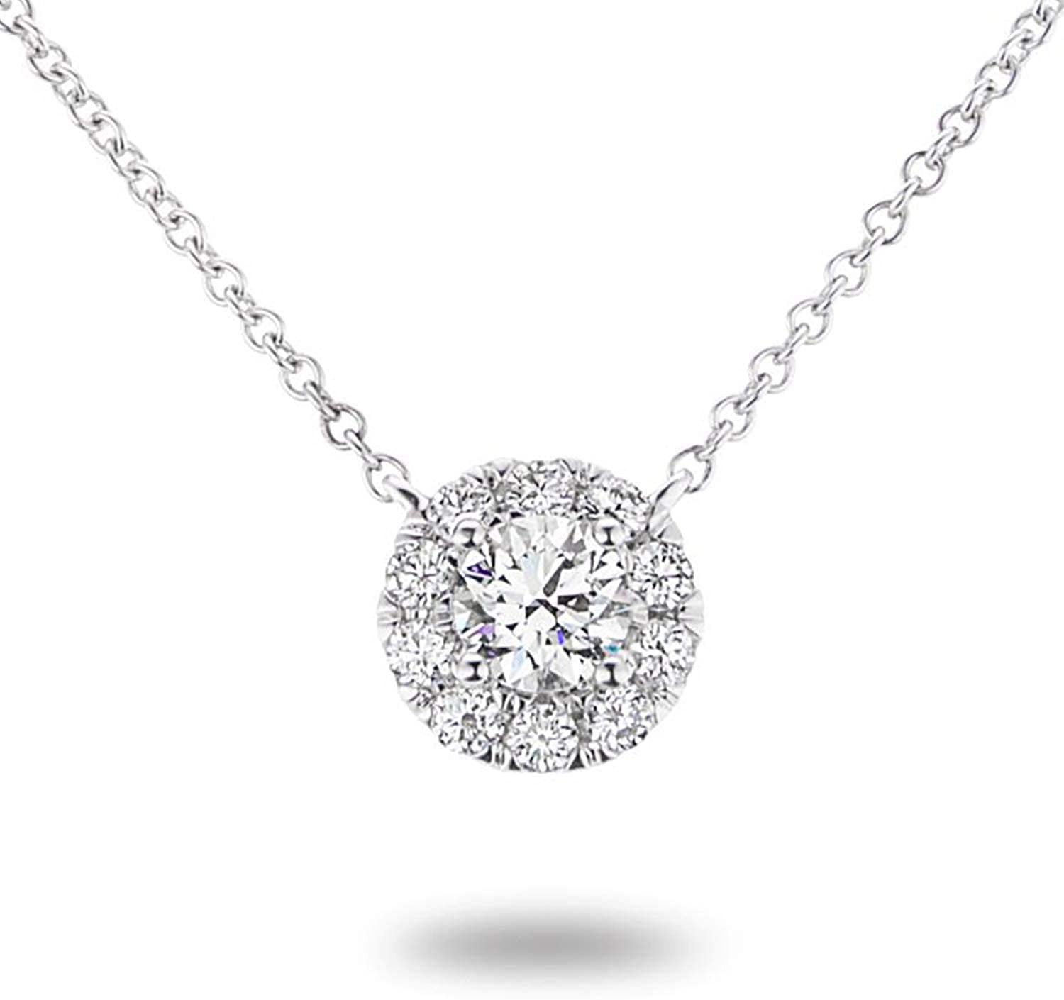 - SPARKLING SOPHISTICATION – Your favorite person will be so excited to receive this stunning pendant necklace! The 16" to 18" adjustable chain shows off a single-stone round pendant of an exquisite lab grown white diamond, with prongs set on-point for a hybrid circle-in-a-square effect. The gems are graded G-H color and eye-clean, Very Slightly Included clarity.Whether it is an elegant holiday office party or lunch with her BFF, this piece is a perfect complement to her outfit!