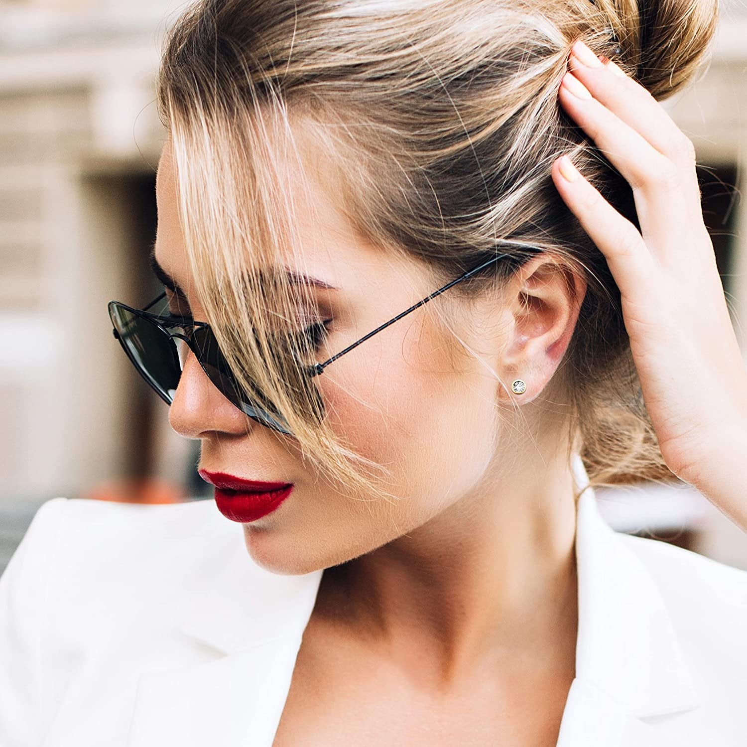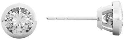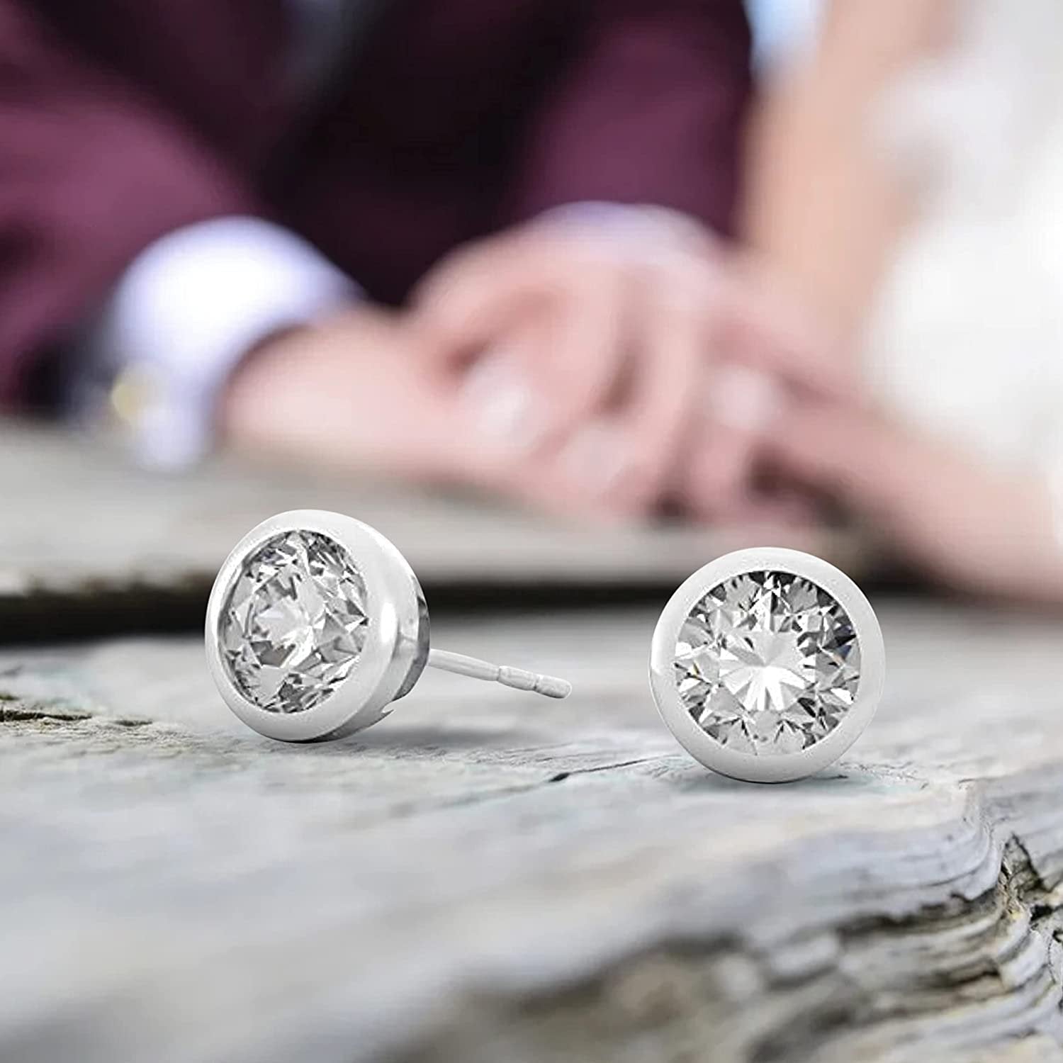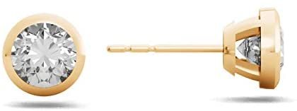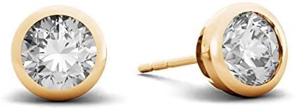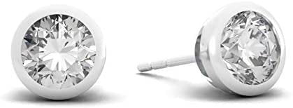 - MODERN SIMPLICITY – The clean lines of the bezel settings of these stud earrings are elegant and streamlined, while the round brilliant-cut stones lend a classic touch. The solitaire lab-created diamonds are securely nestled in their tapered settings, while notched friction posts and butterfly backs keep them comfortably secure on your pierced ears all day long.
