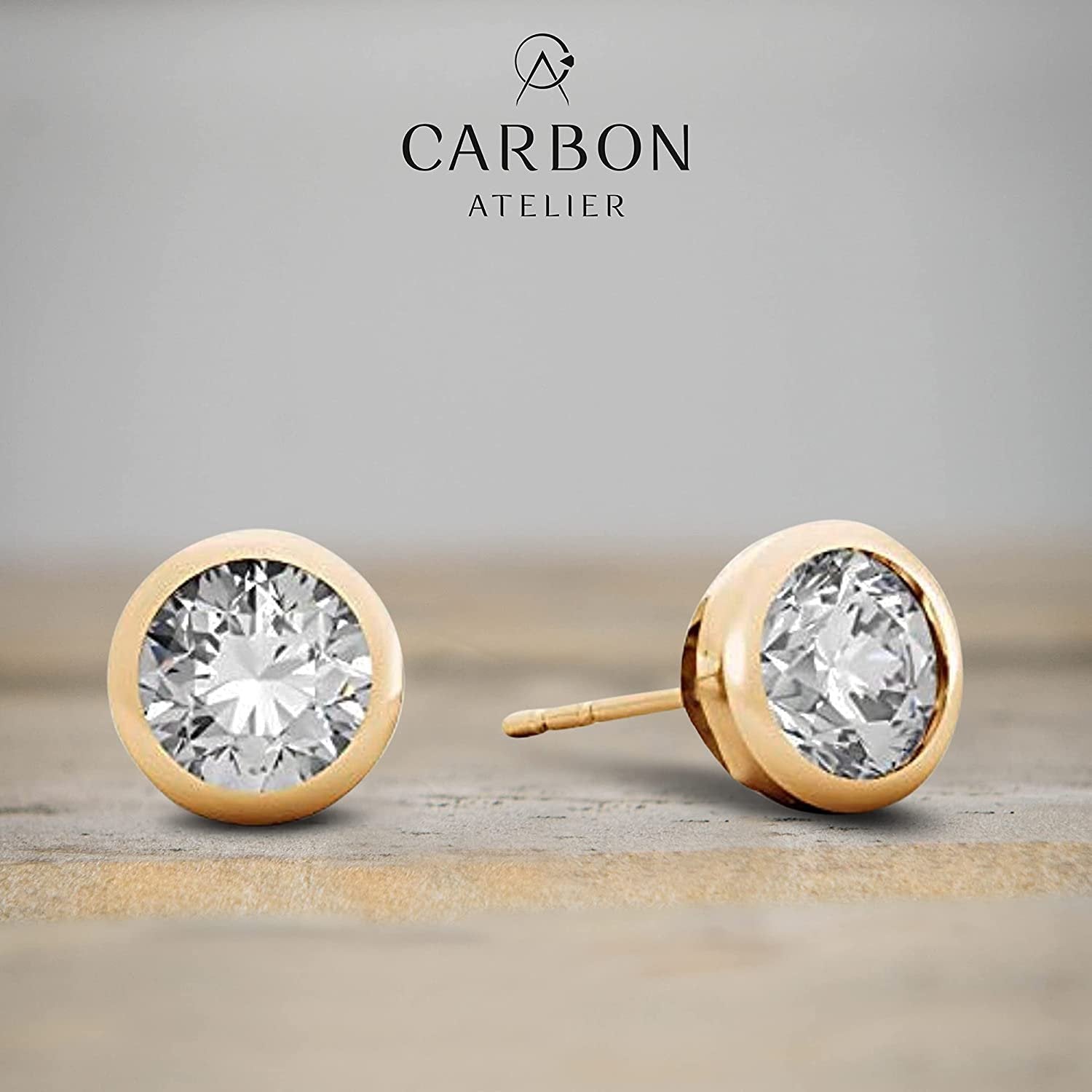 These are the studs you're looking for! If you've been on the hunt for diamond stud earrings with the more affordable option of lab-created diamond gemstones, your search ends now! These contemporary solitaire studs are the perfect complement to any outfit, and go seamlessly from work or school to a night out on the town. The solid 14K gold settings are top quality, and the expertly-cut and polished cultured diamond stones will bring you joy for decades. The gleaming genuine 14 karat gold mountings won't tarnish, and are hypoallergenic so they won't irritate your ears, even with daily wear. Trust Carbon Atelier, the laboratory grown diamond authority!