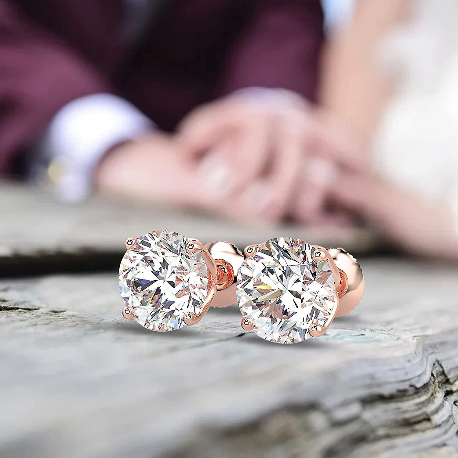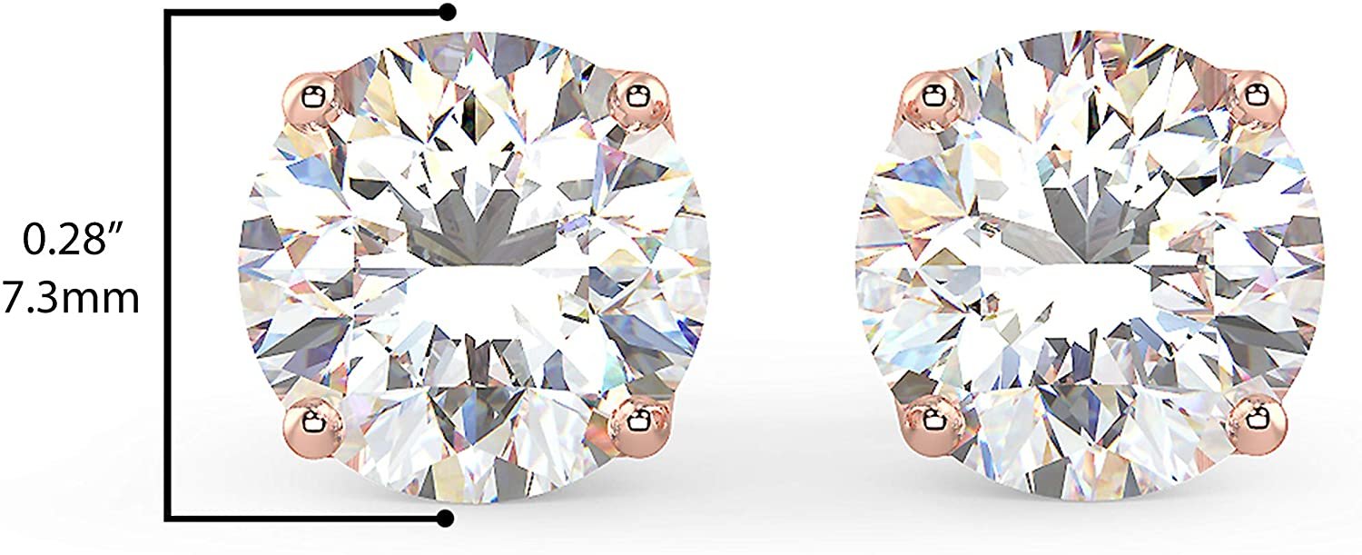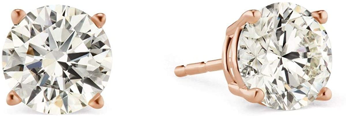 Certified 2.0-3.0 Cttw Round Brilliant-Cut Lab Created Diamond 14K Gold Classic Four-Prong Stud Earrings (J-K Color, SI2-I1 Clarity) - Choice of Gold Colors, Gem Weights