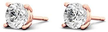 If you've been searching for the perfect diamond stud with the more affordable option of lab-created diamond gemstones, look no further! These four-prong solitaire studs are the perfect complement to any outfit, from your favorite leather jacket and jeans, to the most formal gown. The four-prong settings are top quality, and the expertly-cut and polished cultured diamond stones will bring you joy for decades. The gleaming genuine 14 karat gold mountings won't tarnish.