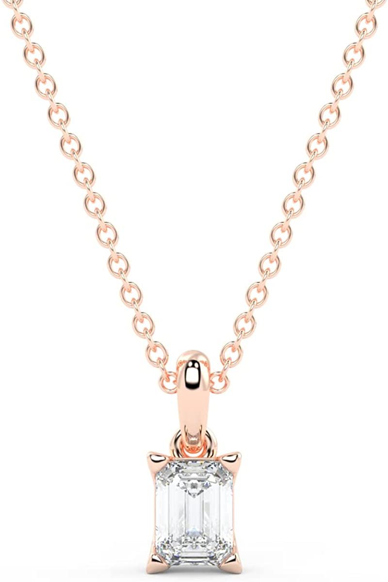 - ETERNAL ELEGANCE - This stunning IGI certified 14kt gold lab created diamond pendant necklace is offered in your choice of yellow, white, or pink gold and set with a 1/4 carat emerald cut diamond that dangles from a tapered bail. A diamond solitaire pendant is a classic jewelry staple and a welcome addition to any jewelry collection. This chic pendant is paired with a matching 18” cable chain with a lobster claw clasp. This elegant style is the perfect gift for any occasion or milestone!