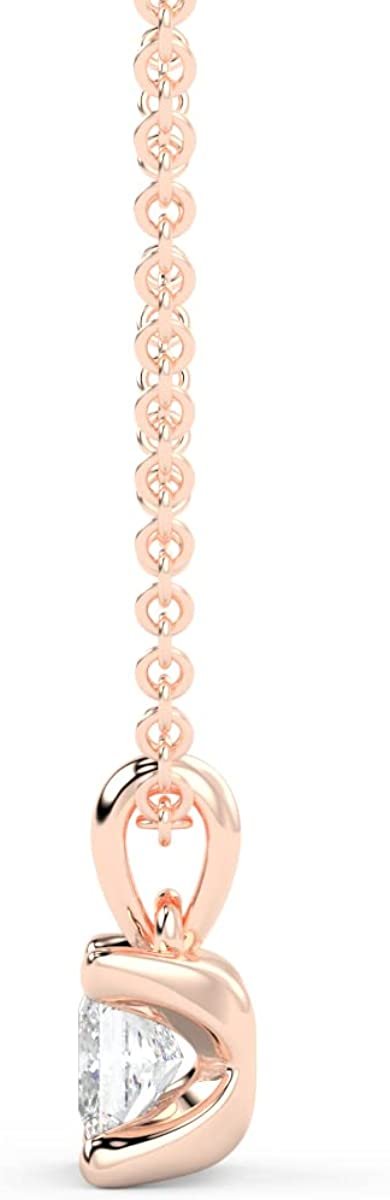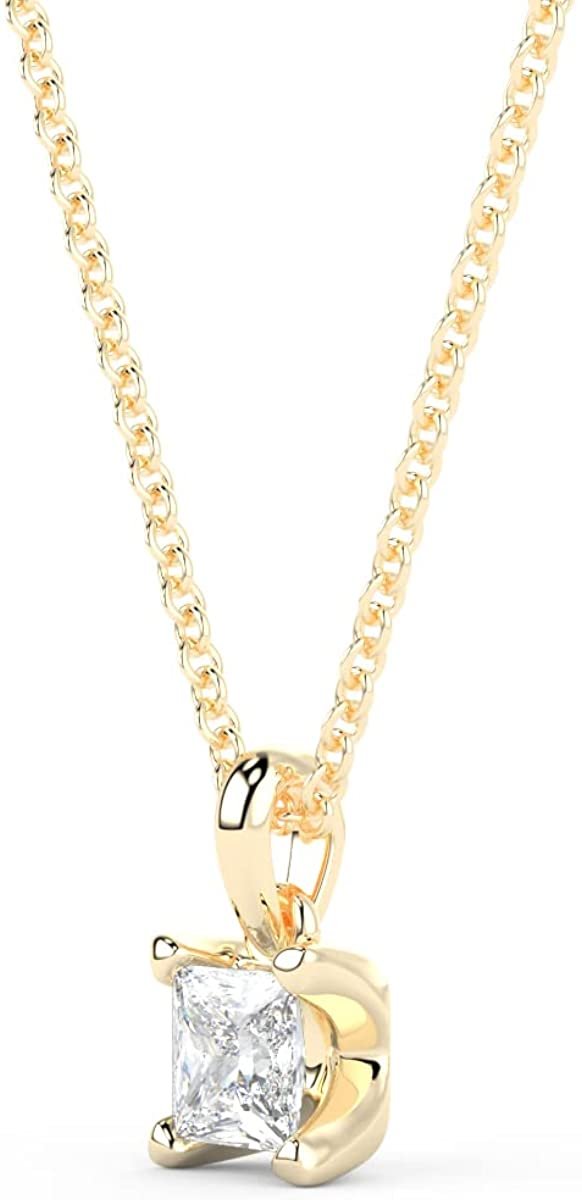 - ETERNAL ELEGANCE - This stunning IGI certified 14kt gold lab created diamond pendant necklace is offered in your choice of yellow, white, or pink gold and set with a 1/4 carat princess cut diamond that dangles from a tapered bail. A diamond solitaire pendant is a classic jewelry staple and a welcome addition to any jewelry collection. This chic pendant is paired with a matching 18” cable chain with a lobster claw clasp. This elegant style is the perfect gift for any occasion or milestone!
