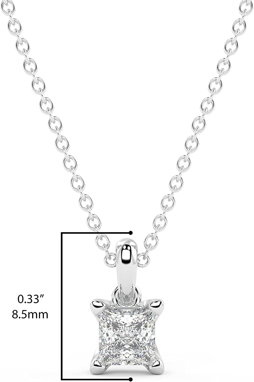 IGI Certified 1/4 Ct Princess Cut Lab Grown Diamond 14K Gold Solitaire Pendant Necklace (G-H Color, VS1-VS2 Clarity) - 18” - Choice of Metal Color