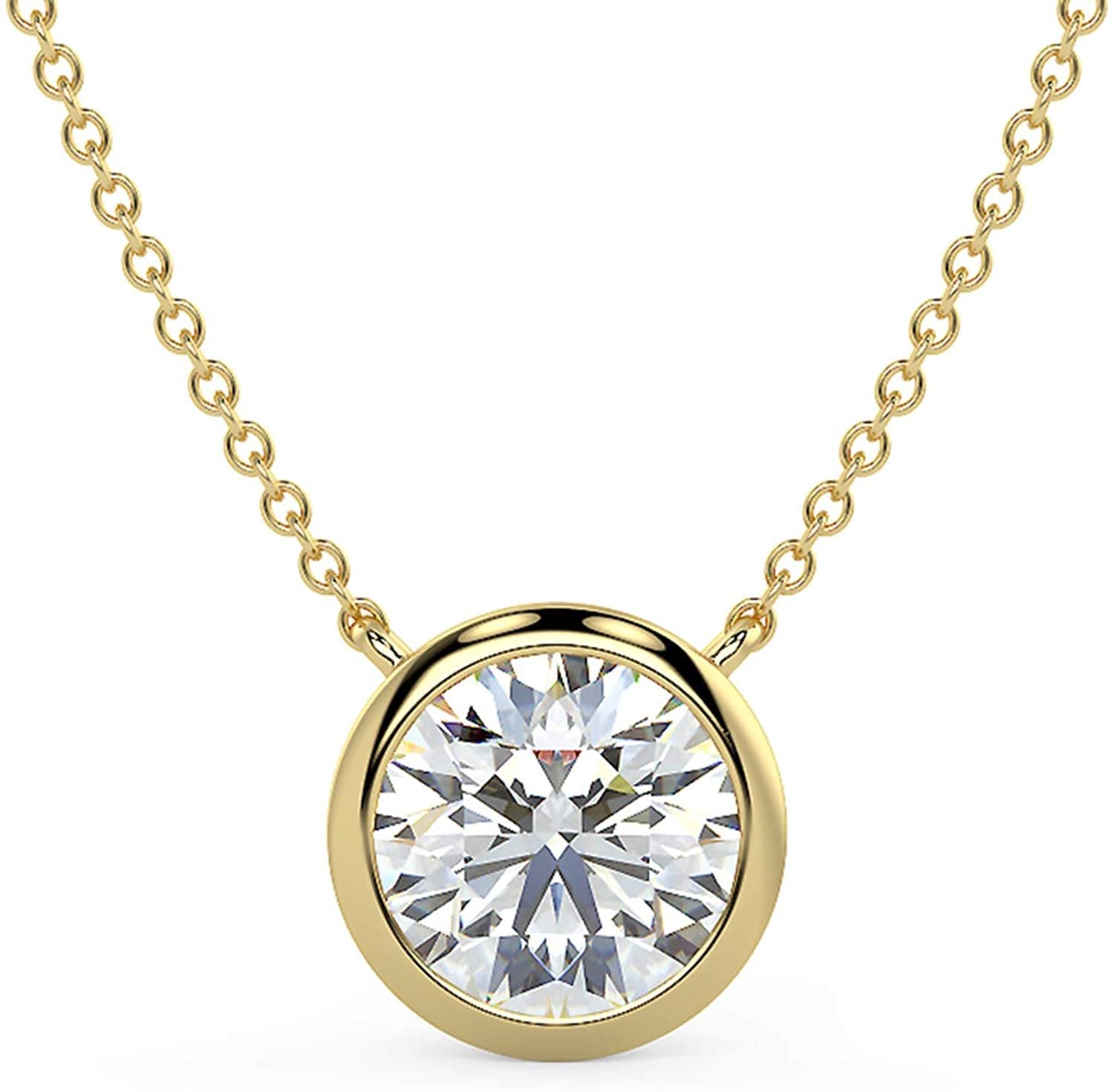 - COLLECT COMPLIMENTS – This sparkling necklace on an adjustable 16" to 18" fine cable chain features a single stunning round-cut lab-grown white diamond, simply set in a sleek and iconic bezel setting in shining 14K gold. This solitaire-style pendant is sure to be her jewelry box favorite, reminding her of you and the value you place in her. Every woman will feel elegant and cherished in this modern accessory!