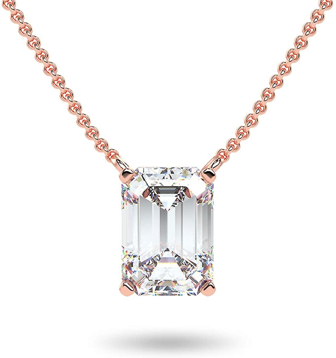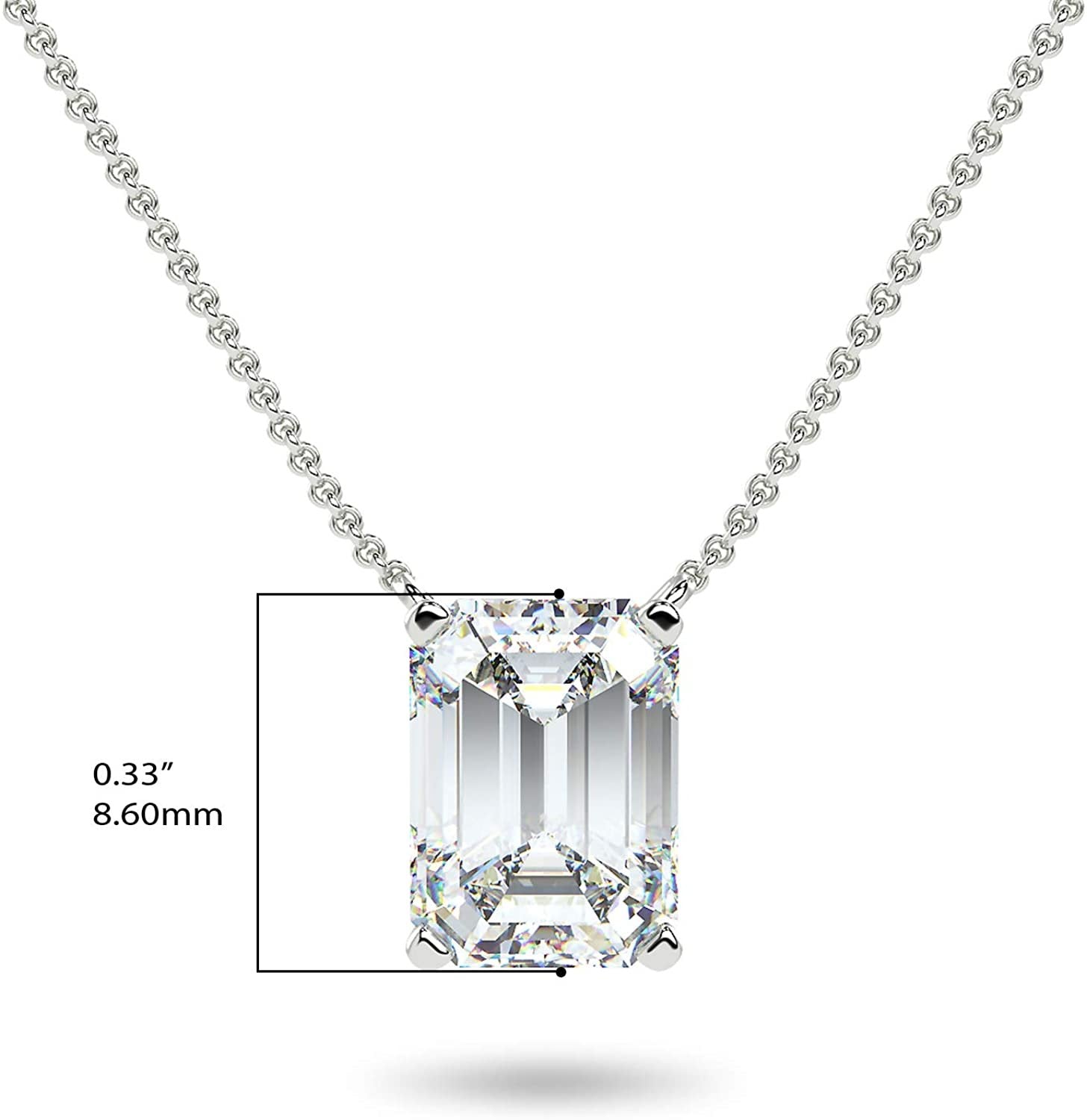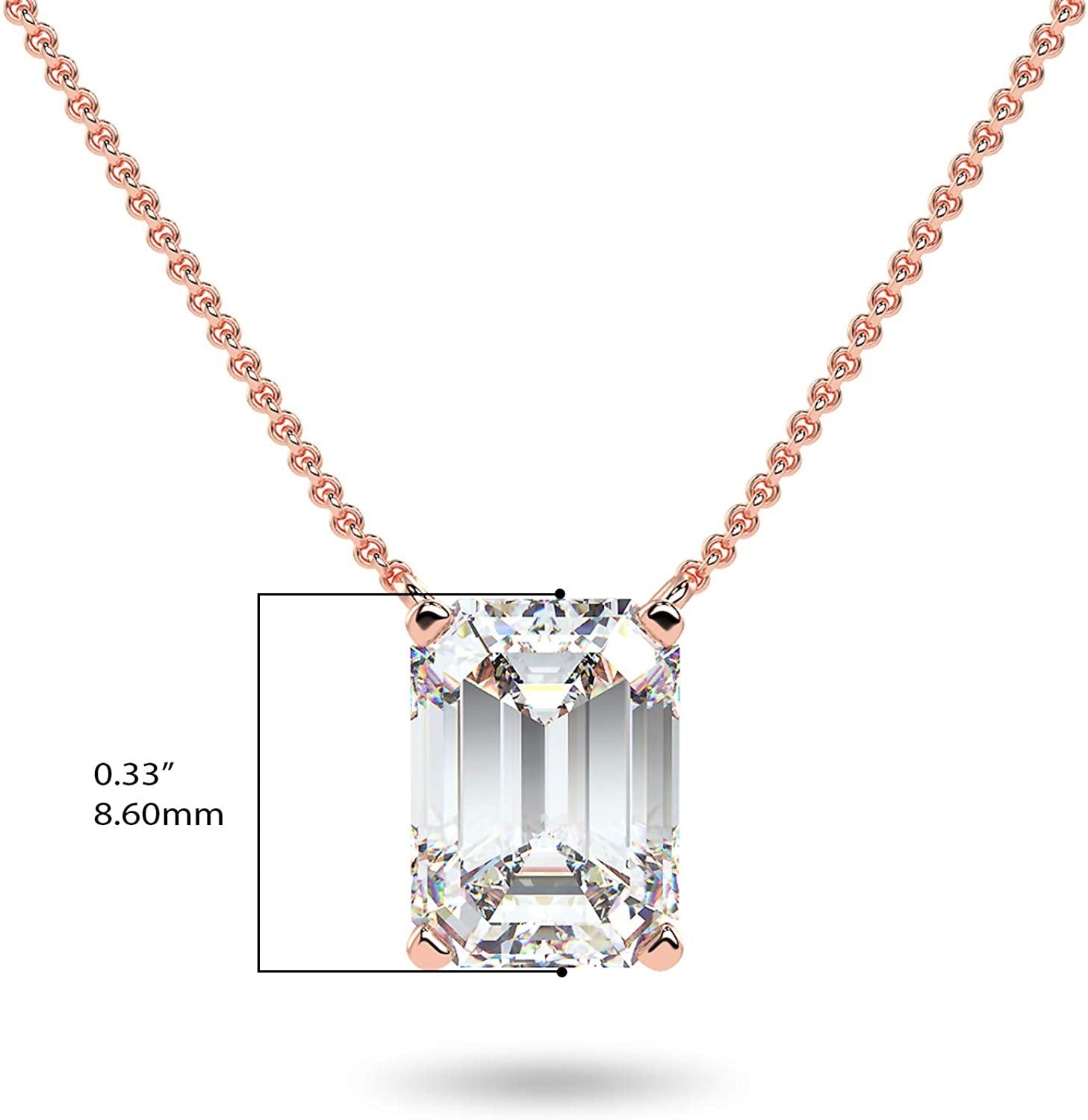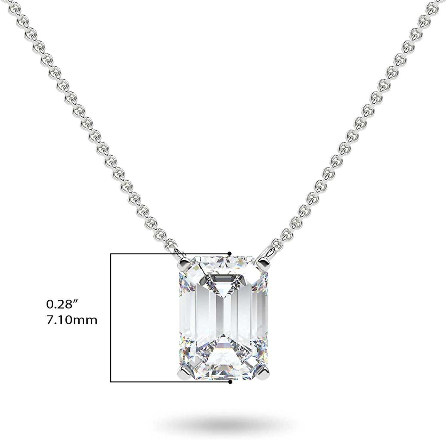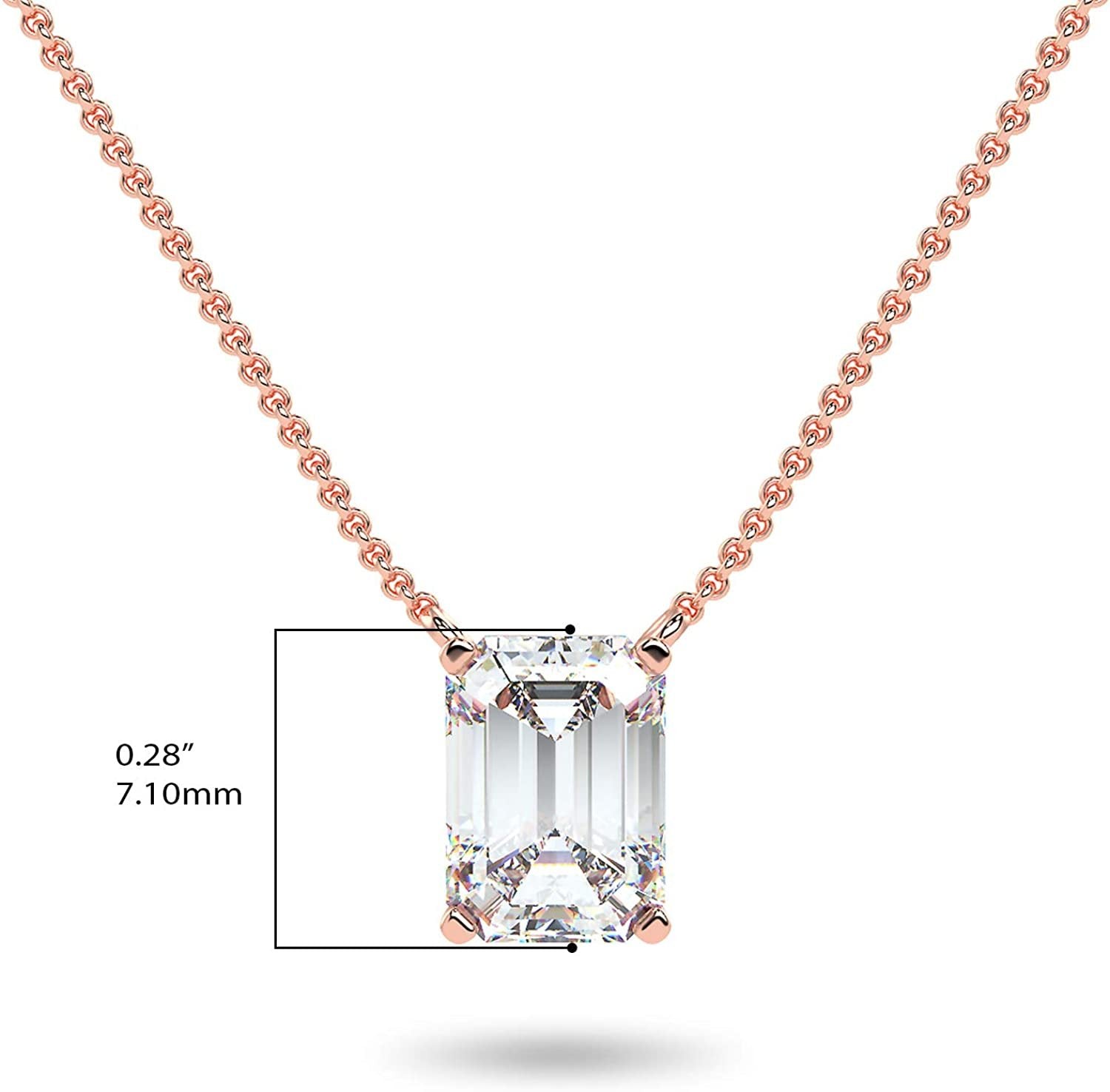 IGI Certified 14K Gold 1/3 to 1-1/2 Carat Rectangular Emerald-Cut Lab Grown Diamond Suspended Solitaire Pendant Necklace (G-H Color, VS1-VS2 Clarity), 18" - Choice of Gold Color, Weights