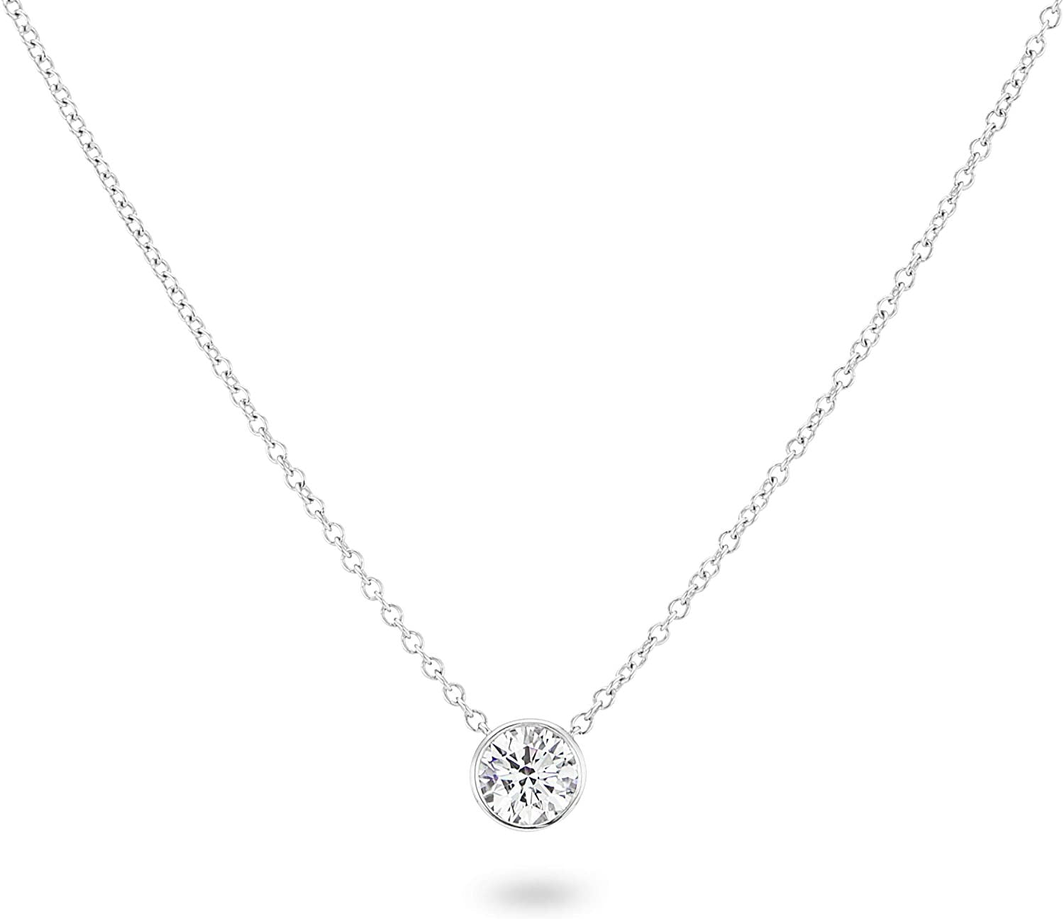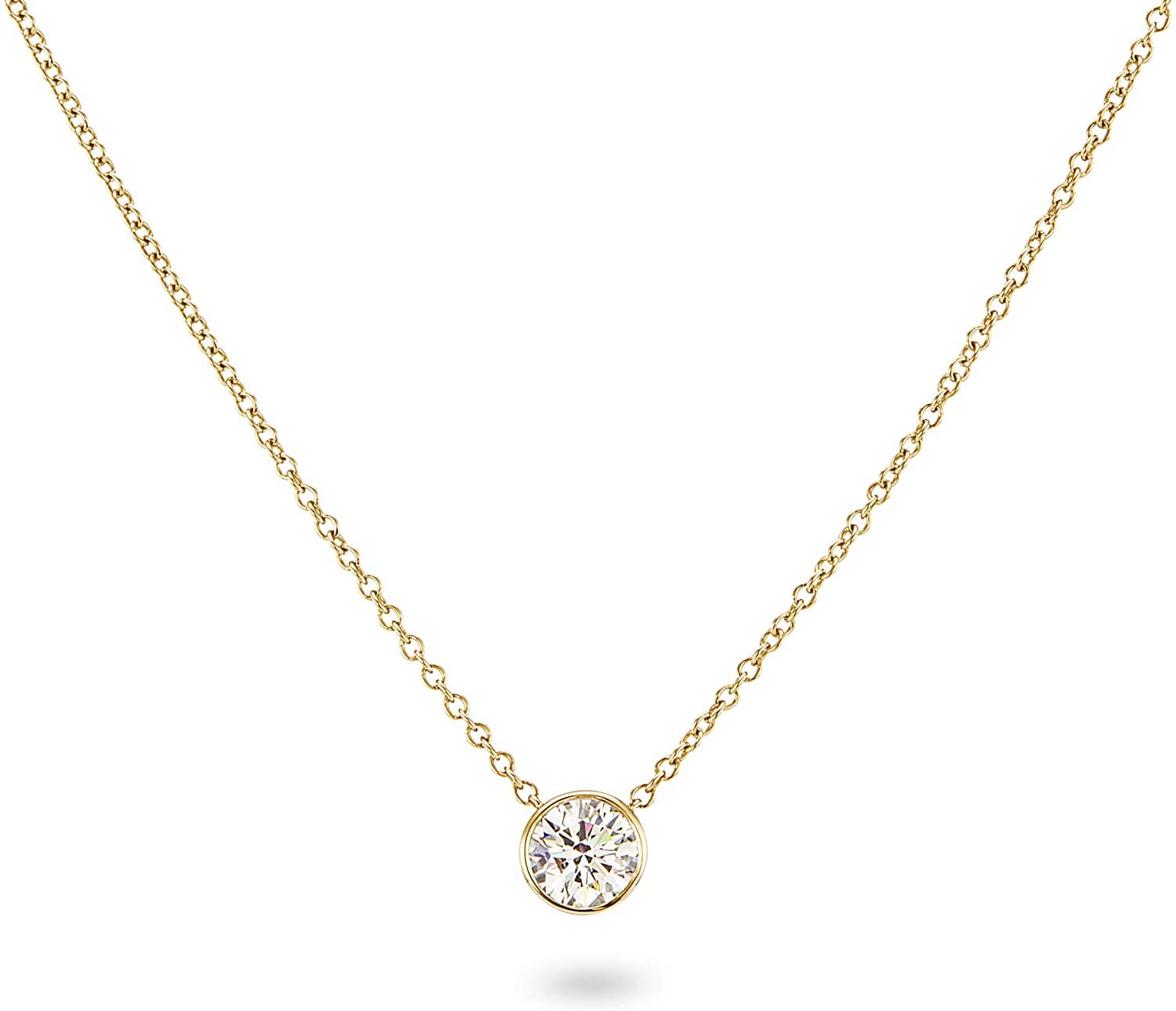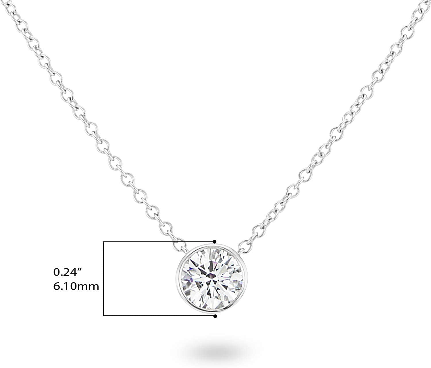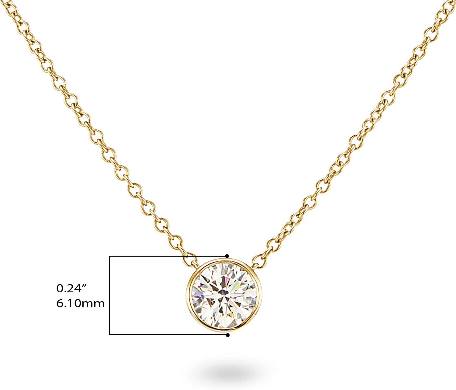 IGI Certified 14K Gold 1/4 to 1/2 Carat Round Brilliant Cut Lab Created Diamond Bezel-Set Solitaire Pendant Necklace (G-H Color, VS1-VS2 Clarity), 18" - Choice of Carat & Gold Color