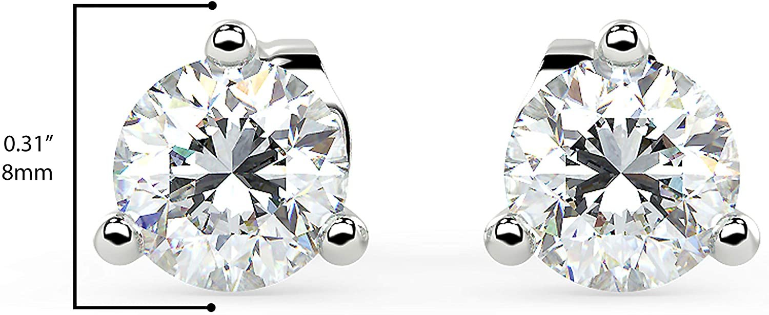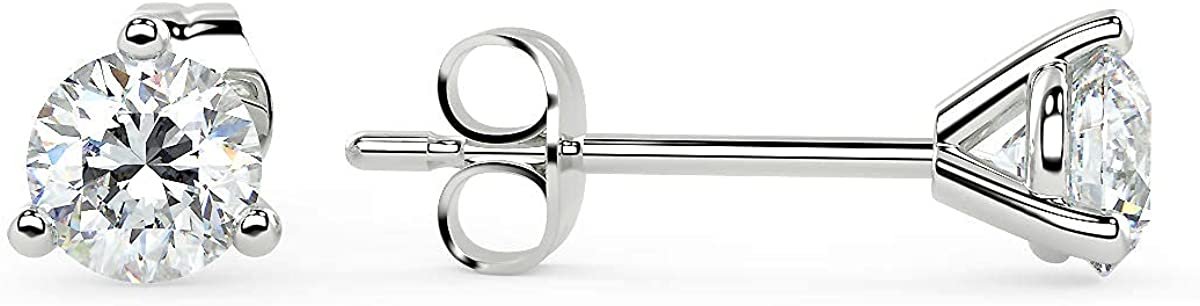 - COLLECT COMPLIMENTS – These are the studs you've been looking for! The 3 pronged martini setting is elegant in its simplicity – a contemporary twist on an unquestionably classic design. Three slender prongs keep these solitaire diamonds securely nestled in basket settings that let in extra light, for superior sparkle. Notched friction posts and butterfly backs keep them comfortably secure on your pierced ears all day long.
